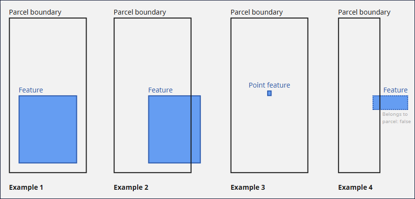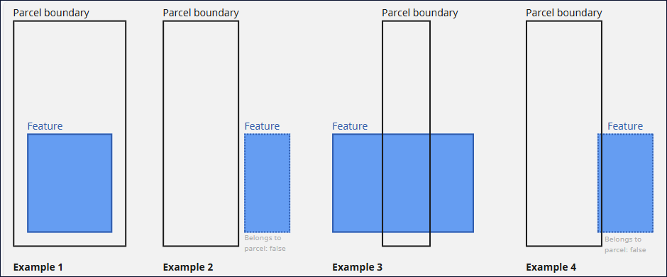 - A building that does not intersect with the parcel is not considered to belong to the parcel (see Example 2)